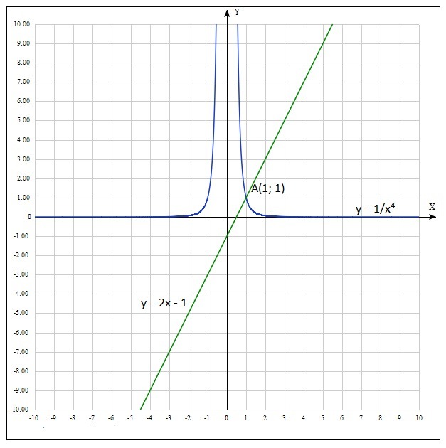 1) Пусть y = 2x - 1 и y = 1/x⁴.