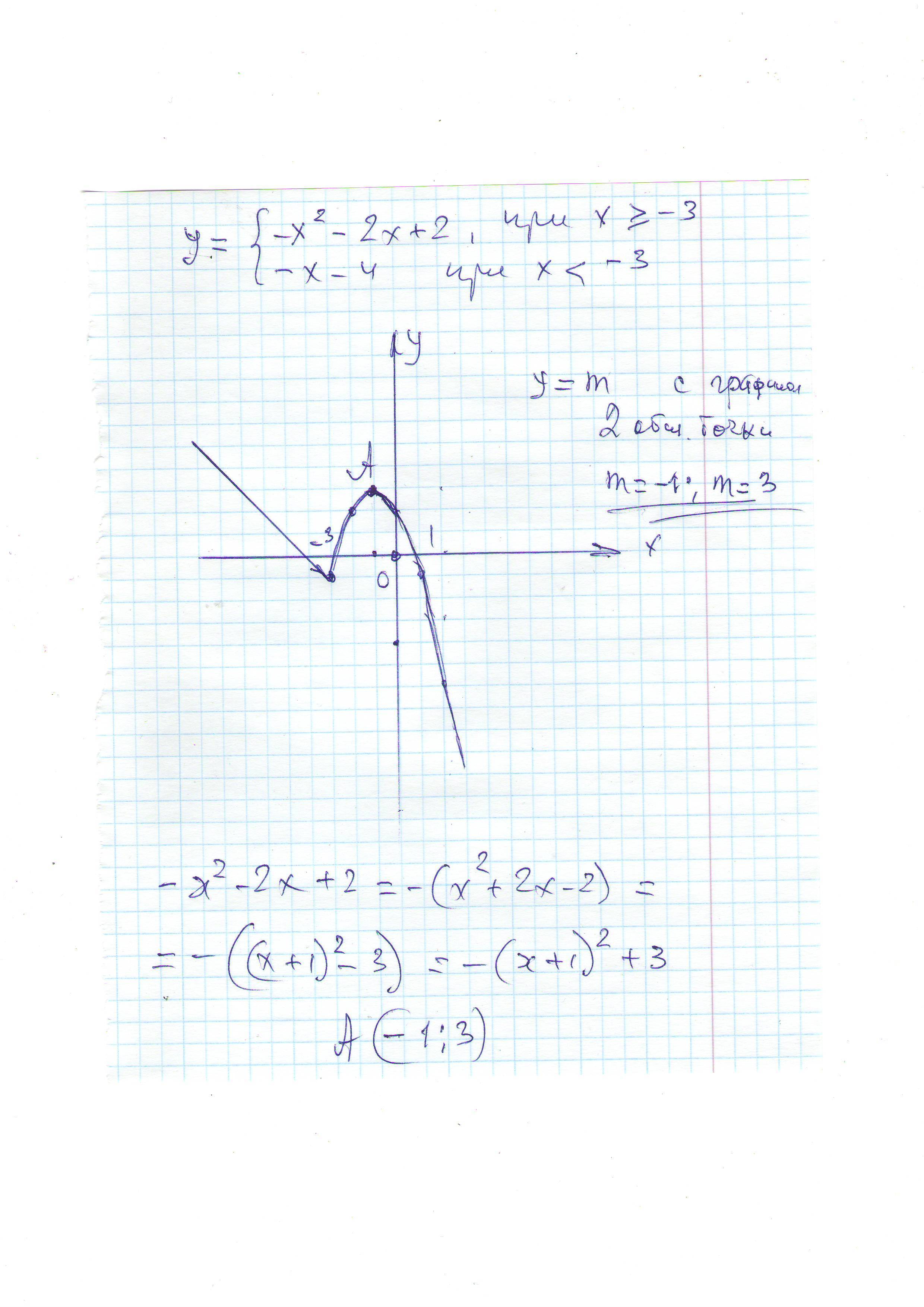 При m=-1 и m=3 прямая y=m имеет с графиком 2 точки общих точки