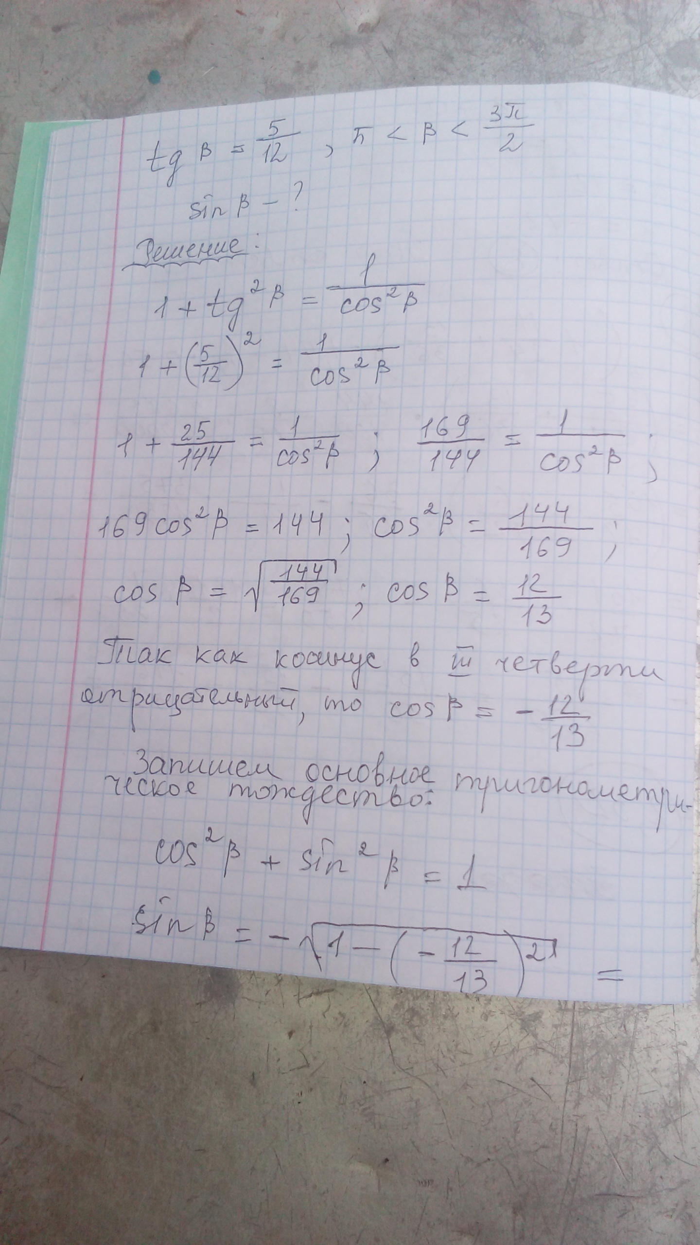 сos²b=1:(1+tg²b)=1:(1+25/144)=1:169/144=144/169