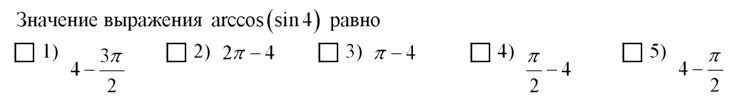 Угол, косинус которого равен синусу 4, по определению принимаем во второй четверти. А так как cos α = sin(90-α) или ((π/2)-α), то ответ мог быть : ((π/2)-4) = 1,570796 - 4 = -2,4292, но это 3 четверть.