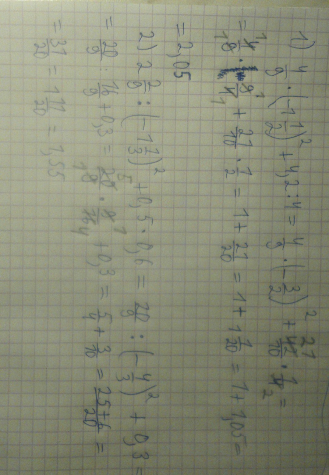 1. 4/9*(-1целая 1/2)² +4,2:4