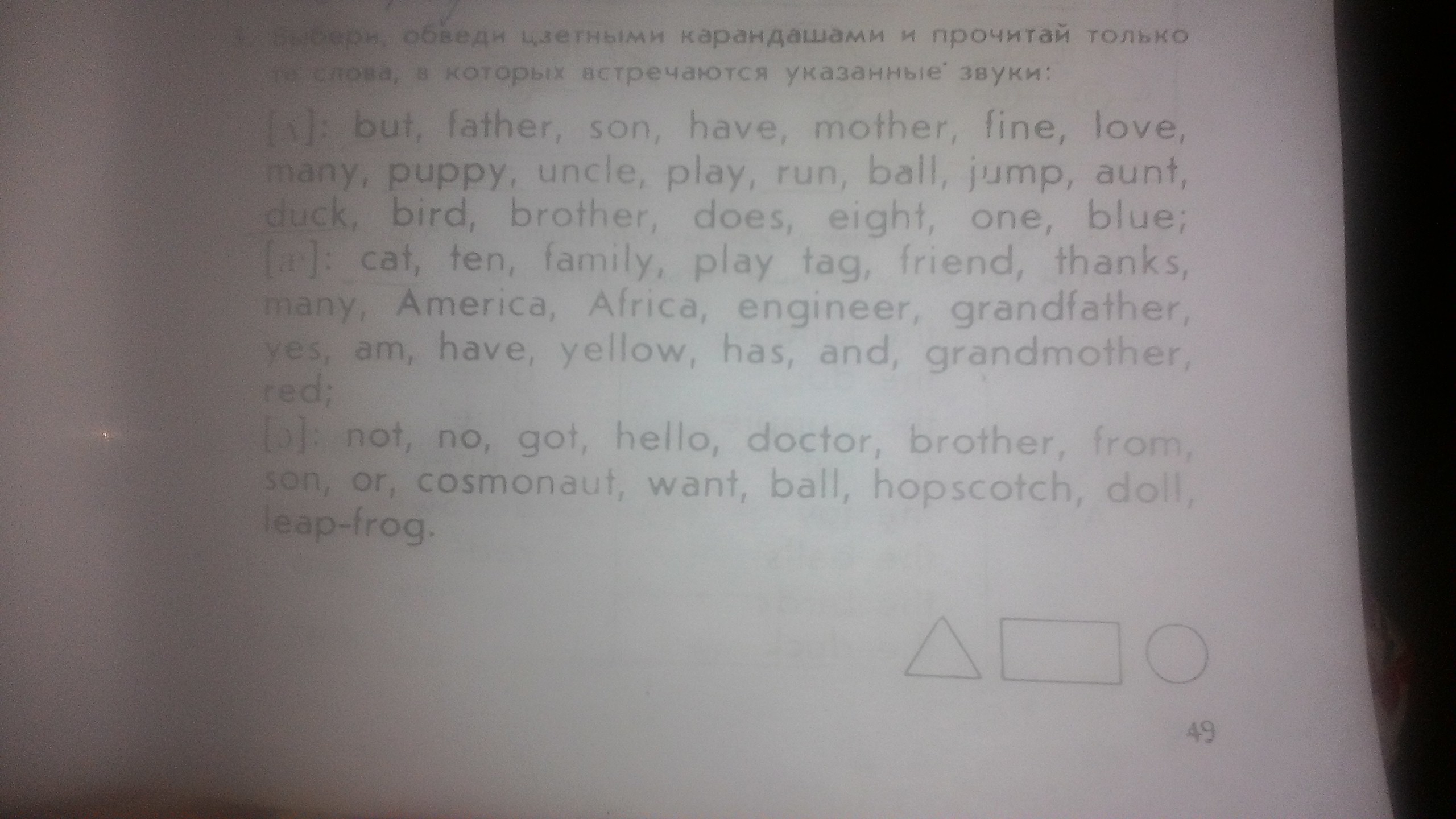 [/\]-but, son,mother,love, puppy, uncle, run, jump,duck, brother,does,one [эe]-cat, family, tag, thanks, many, Africa,grandfather,am, have, has,and grandmother [o]not, got, doctor, from, cosmonaut,want, hopscotch,doll, leapfrog.