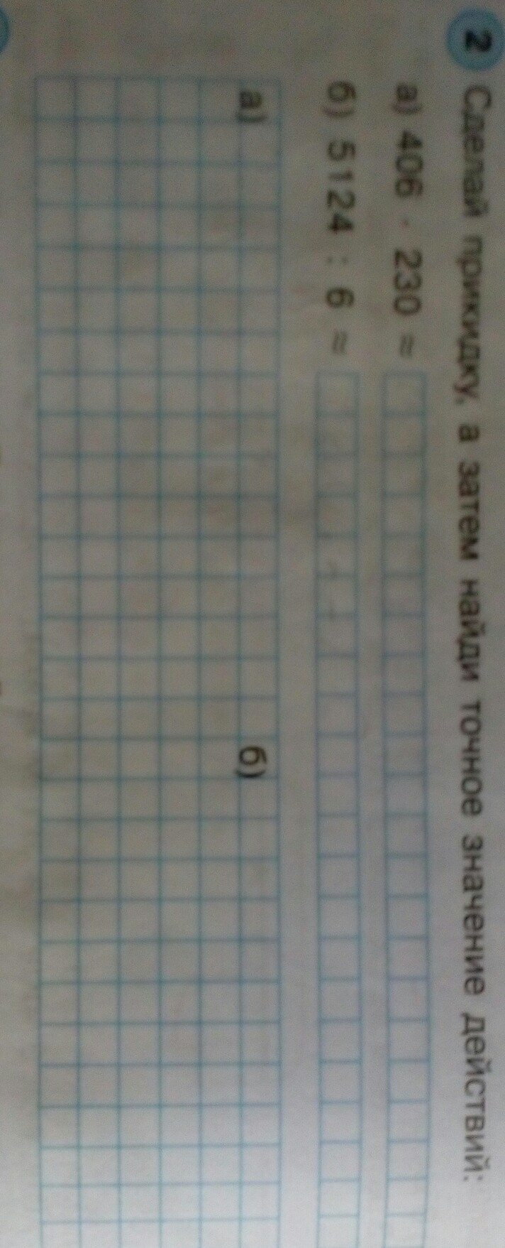 сделай прикидку, а за тем найди точное значение действий а) 406×230 б) 5124÷6