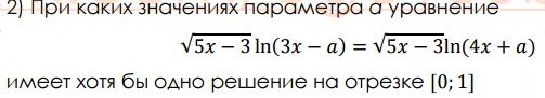 Поэтому один корень x=3/5€[0;1] есть при любом а, при котором оба логарифма определены.