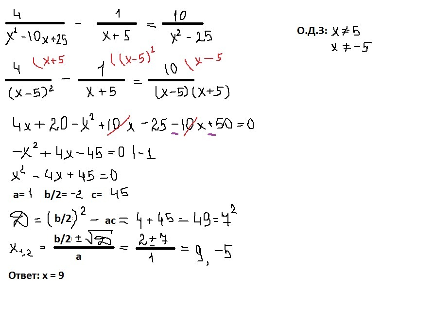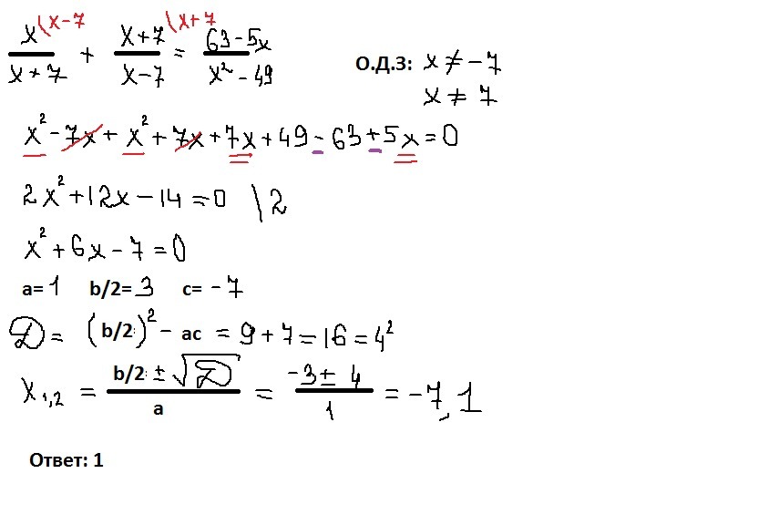 5) получается два ответа, но ты не должна забывать про О.Д.З, которые я тебе выписала исходя из знаменателя (на ноль делить нельзя)