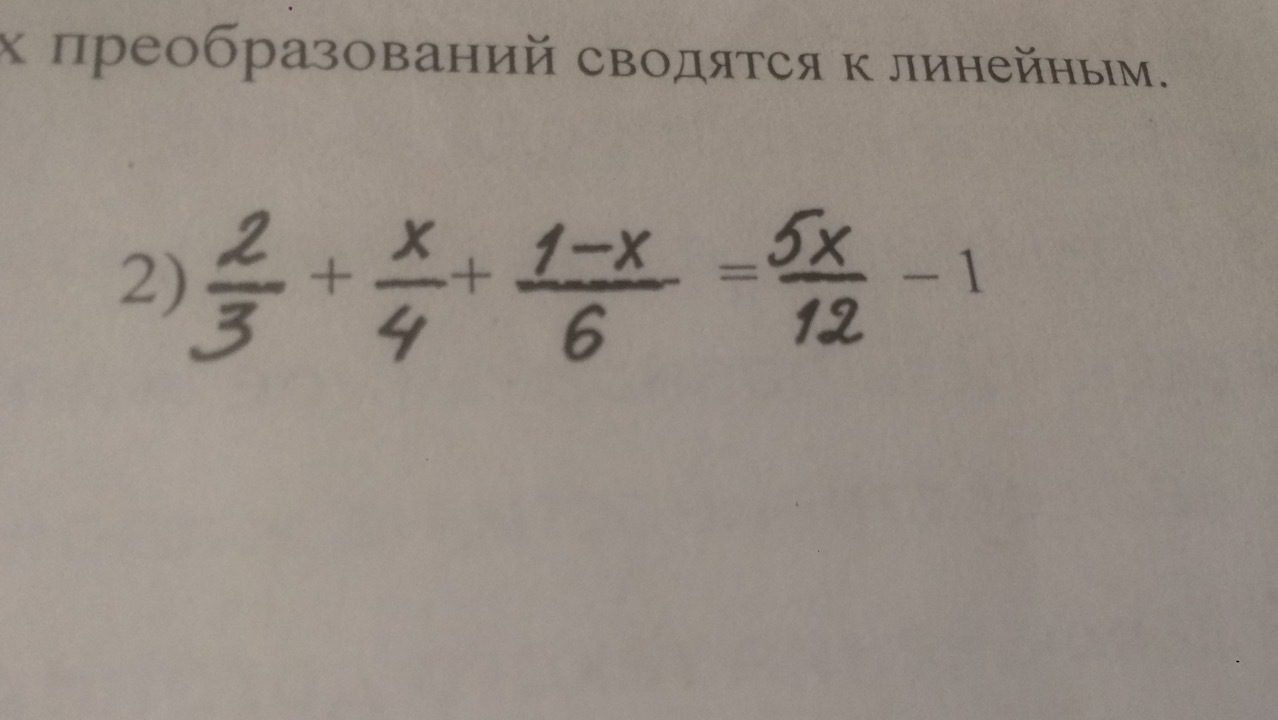 2/3 + х/4 + (1 - х)/6 = 5х/12 - 1 | × 12