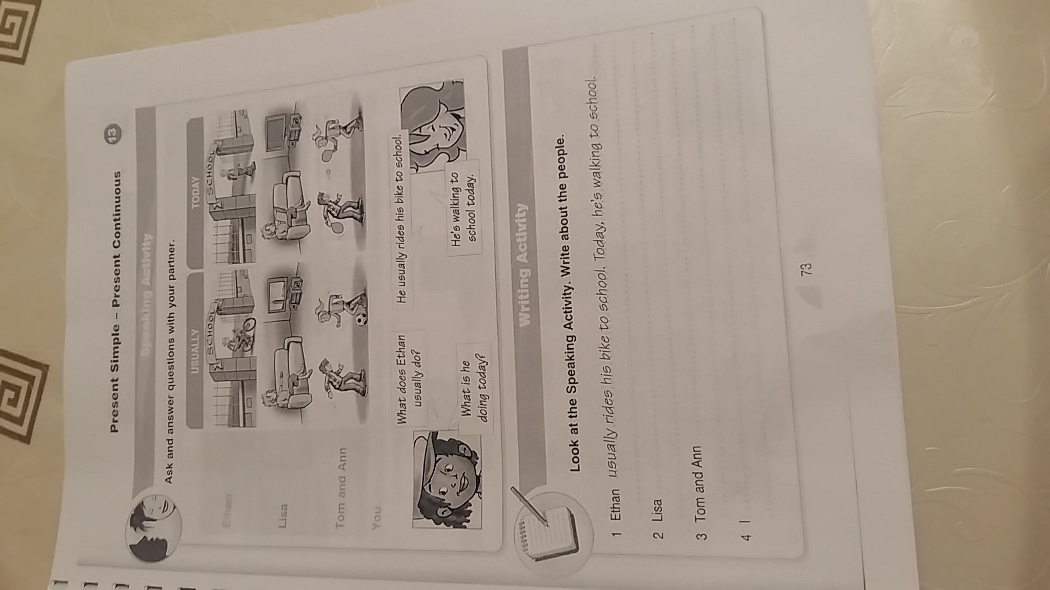 What does Lisa usually do? She usually watches TV. What is she doing today? She is reading a book today.