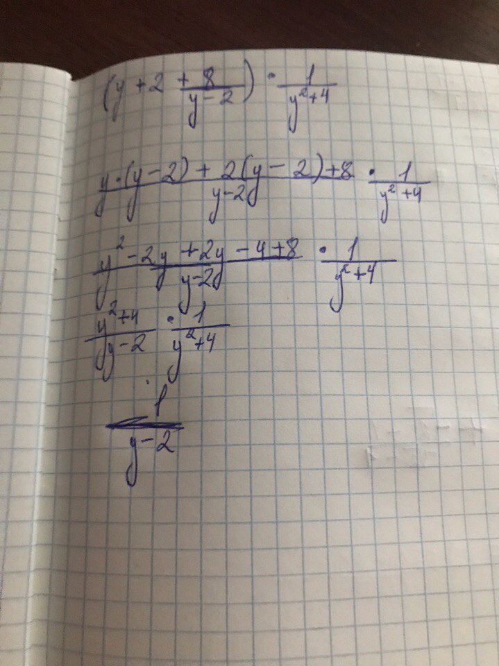 2) {(y²+4)/(y-2)}*1/(y²+4)=1/(y-2) - это ответ.