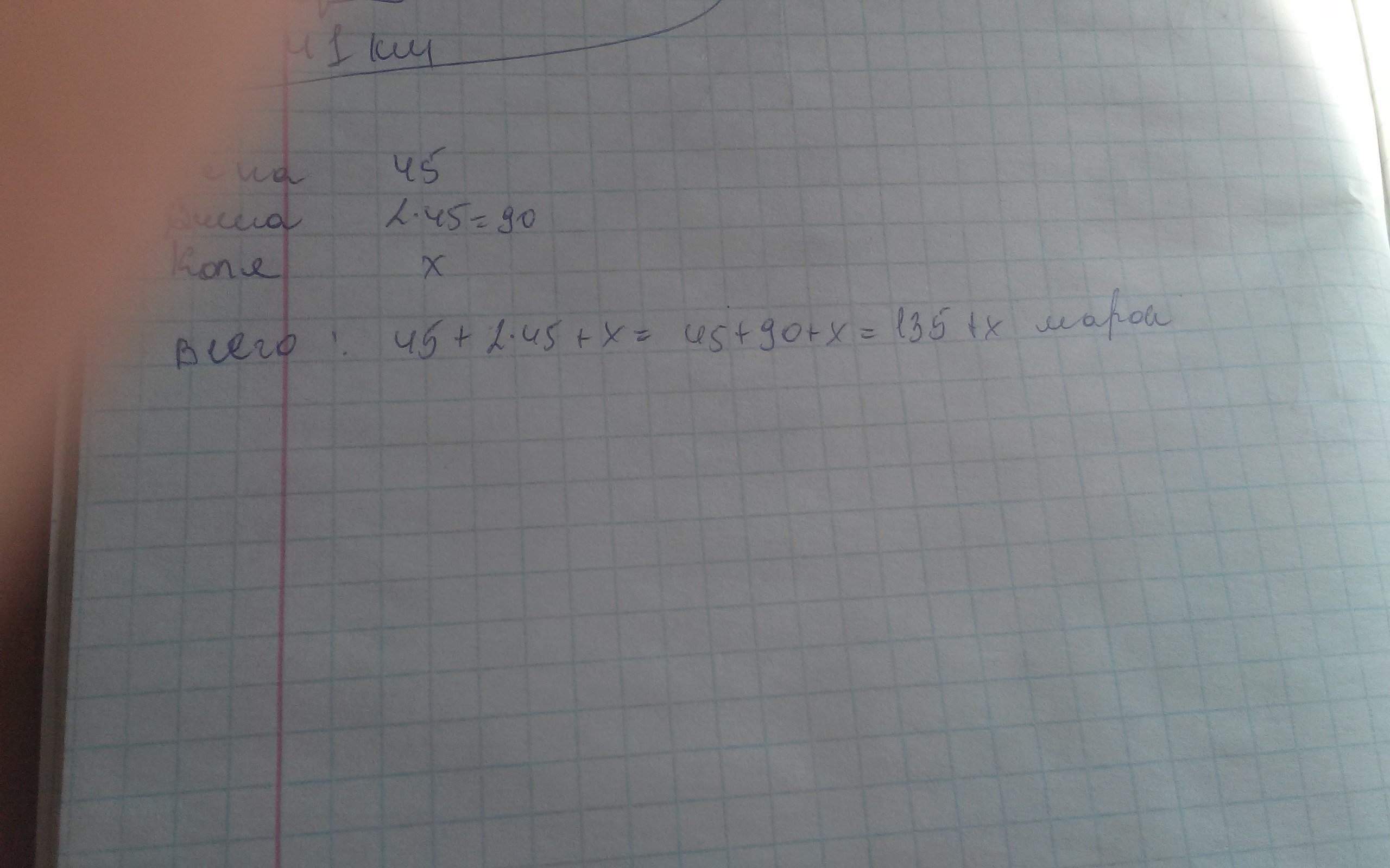 так как коли х, то в суме у них 45+90+х=135+хмарок