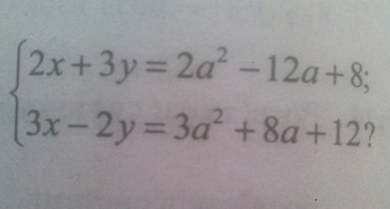 Пояснение: сначала первое уравнение умножить на 3, а второе - на (-2) и сложить оба уравнения (получится 13у=...), затем первое уравнение умножить на 2, а второе - на 3, и оба уравнения сложить (получится 13х=...).