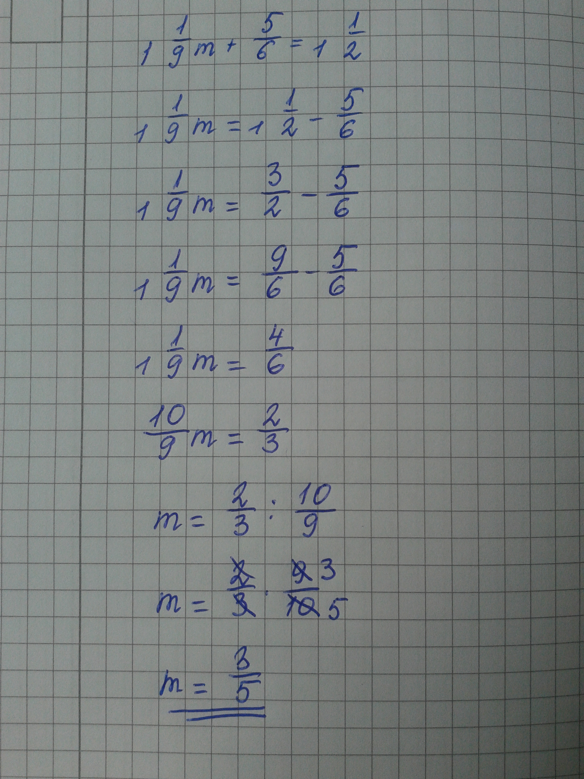 1 1/9*m=1 1/2-5/6=1 3/6-5/6=9/6-5/6=4/6=2/3