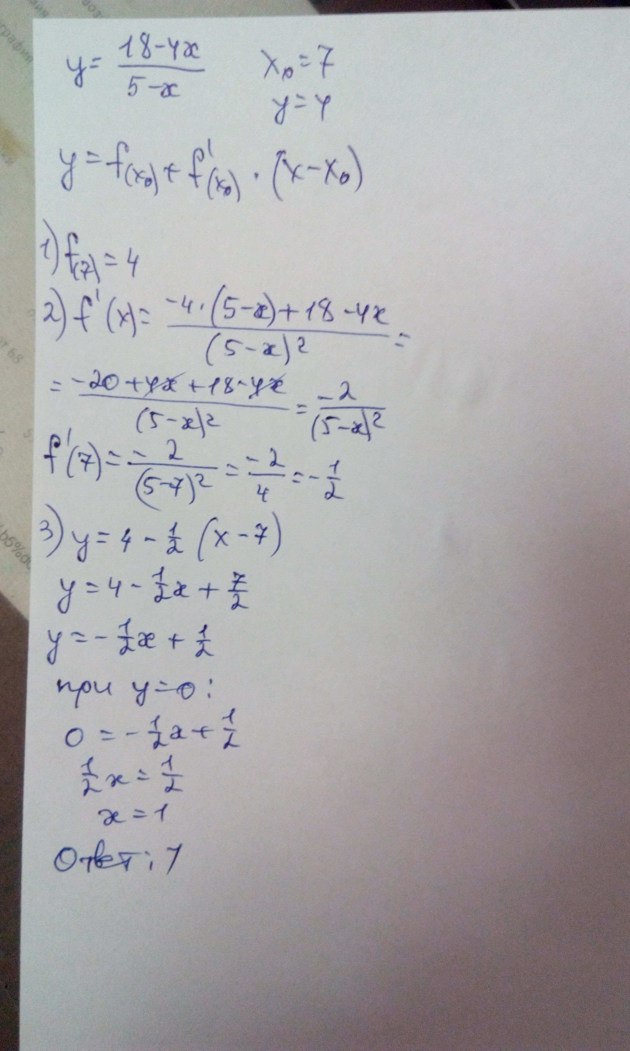 Из условия, что касательная проходит через точку (7; 4) получаем: