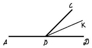 Смежные углы АВС и DBC относятся как а:в,ВК -биссектриса угла DBC. Найдите угол АВК.