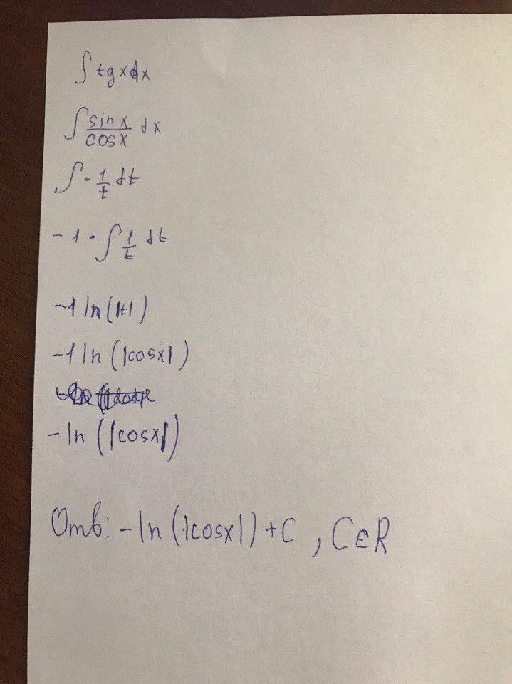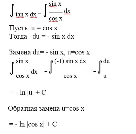 это же табличное значение: интеграл от tgx=-ln|cosx|+C