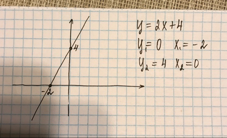 2. Чтобы найти точки пересечения с осью надо вместо игрика, а потом вместо икса подставить 0 и мы получим точки пересечения (0:4) и (-2:0)