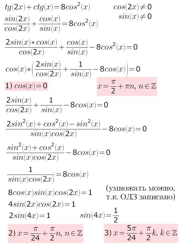 мне всегда больше нравится от тангенсов-котангенсов уходить к синусам-косинусам сразу же)))