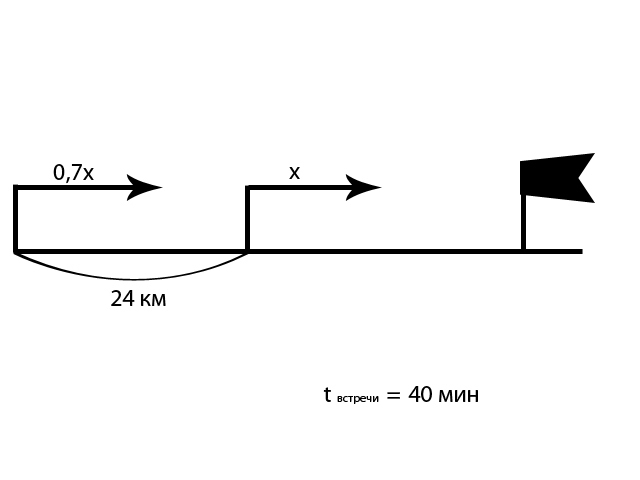 Из двух колхозов, которые находятся на расстоянии 24км, одновременно и в одном направлении выехали два трактора. Скорость первого в 0,7 раза больше скорости второго. Через 40 минут первый догонит второго. Каковы скорости тракторов?