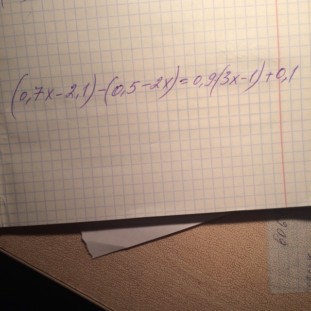 (0,7х-2,1)-(0,5-2х)=0,9(3х-1)+0,1