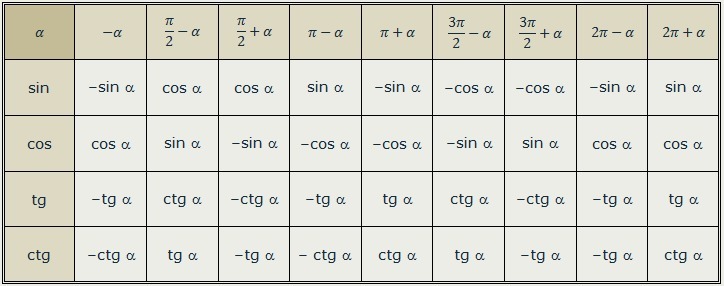 Есть мнемоническое правило,которое должен знать ученик и знание знаков тригонометрических функций по четвертям.Вы же этой таблицей на экзамене не воспользуетесь?Как решать будите?