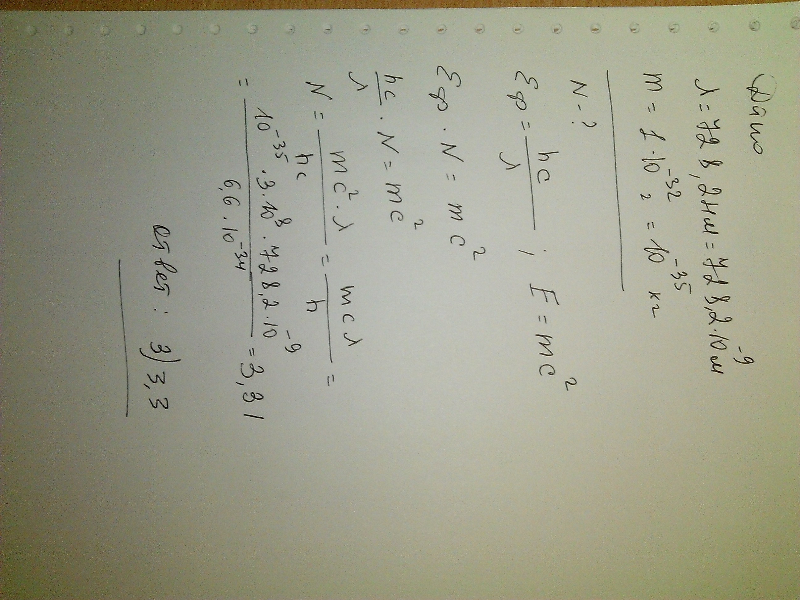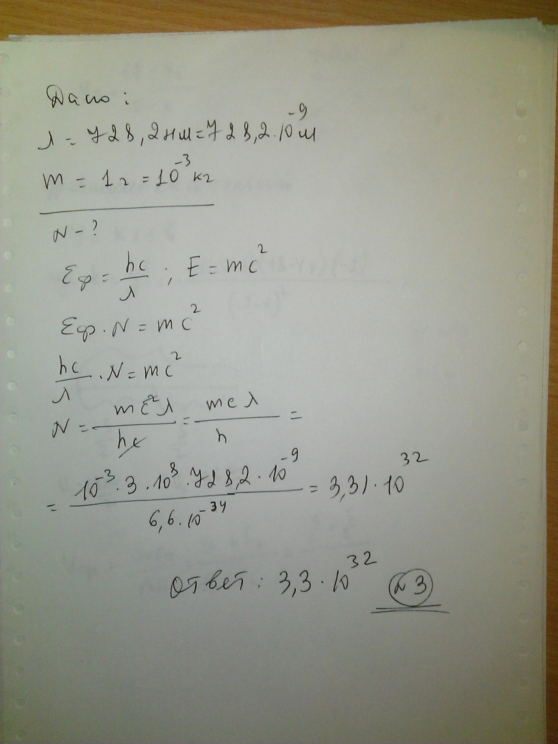 Сколько квантов красного излучения с длинной волны 728,2 нм имеют массу 1 г ? (*10^32)