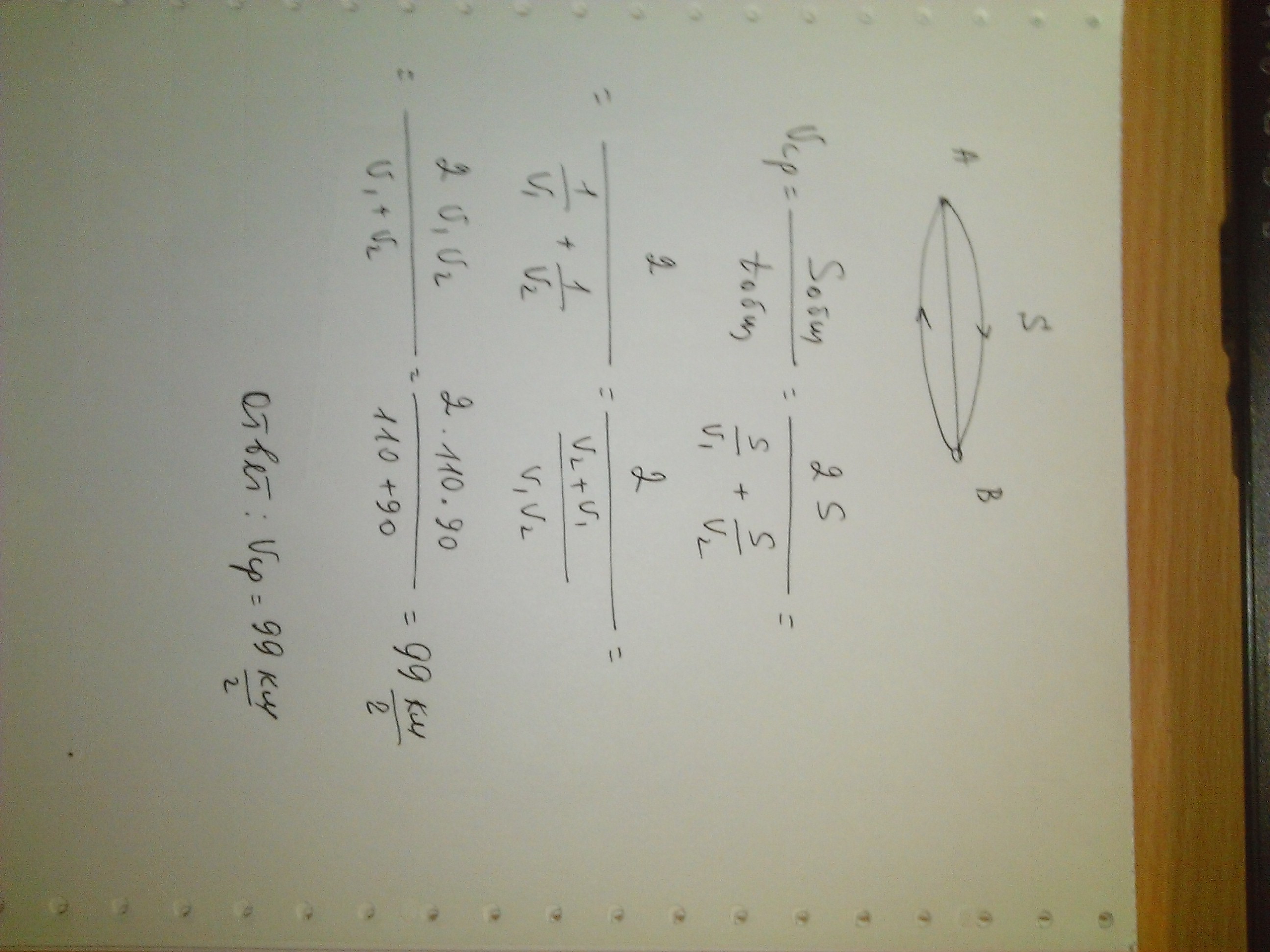 2S:2S/99=2S*99/2S=99км/ч -средняя скорость