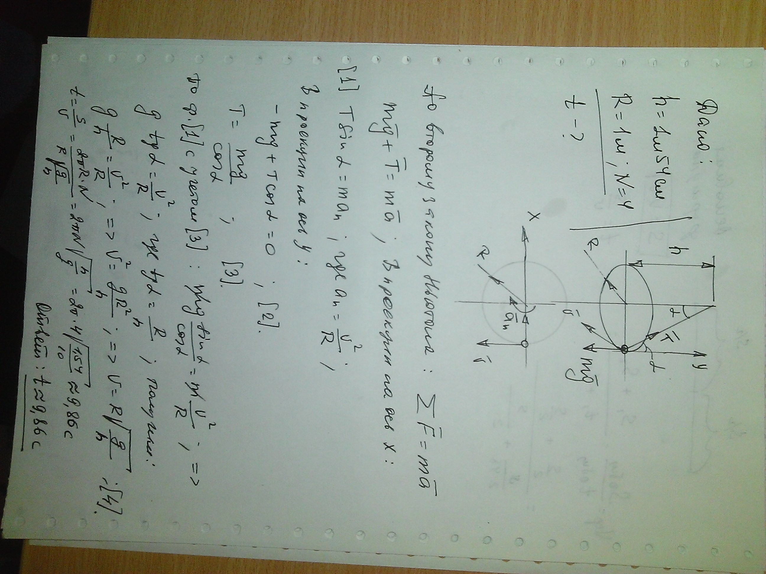 Таня собрала игрушку для кота из хозяйственной нитки и бантика. Играя с котом, она подняла свободный конец нитки над головой и кружилась на одном месте, а кот преследовал бантик в метре от Тани. Определить за какое время кот пробежит 4 круга постоянно следуя за игрушкой, если рост девушки 1 м 54 см.