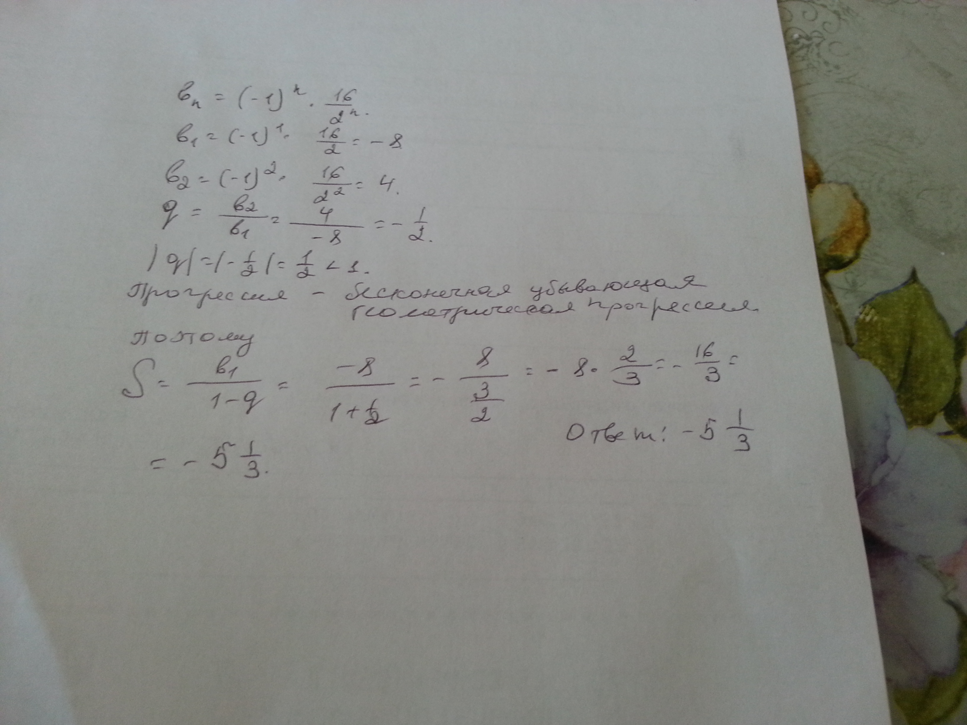 S= -8-1/2*(-8+4-2+1-...) = -8-1/2*S