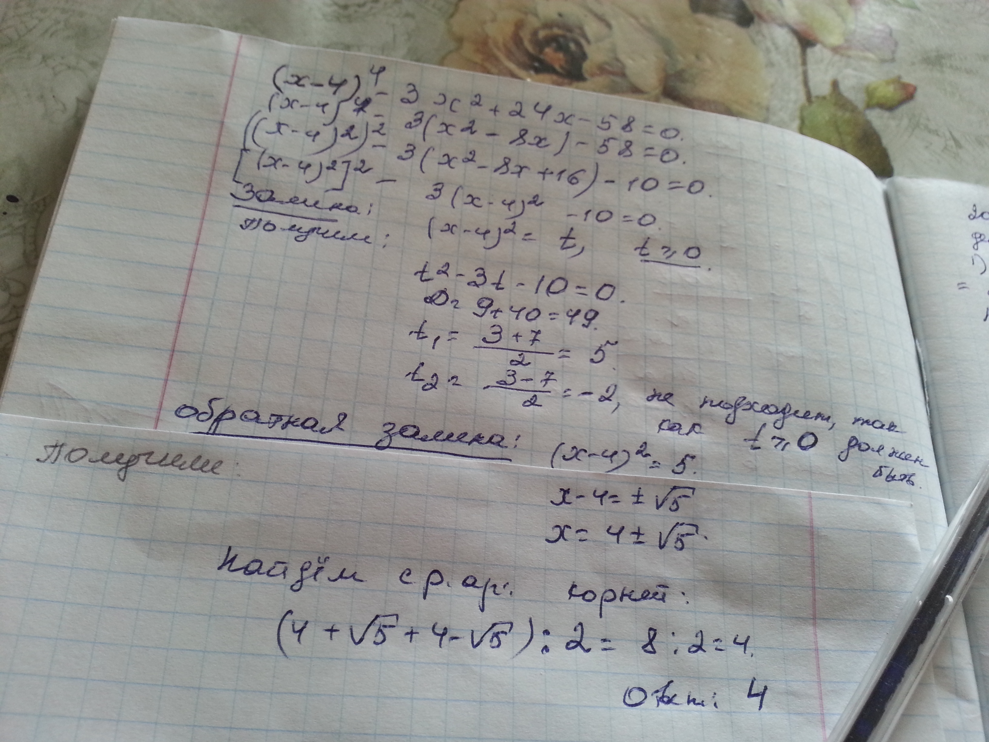 (4+кв.корень5+4-кв.корень5)/2=8/2=4.