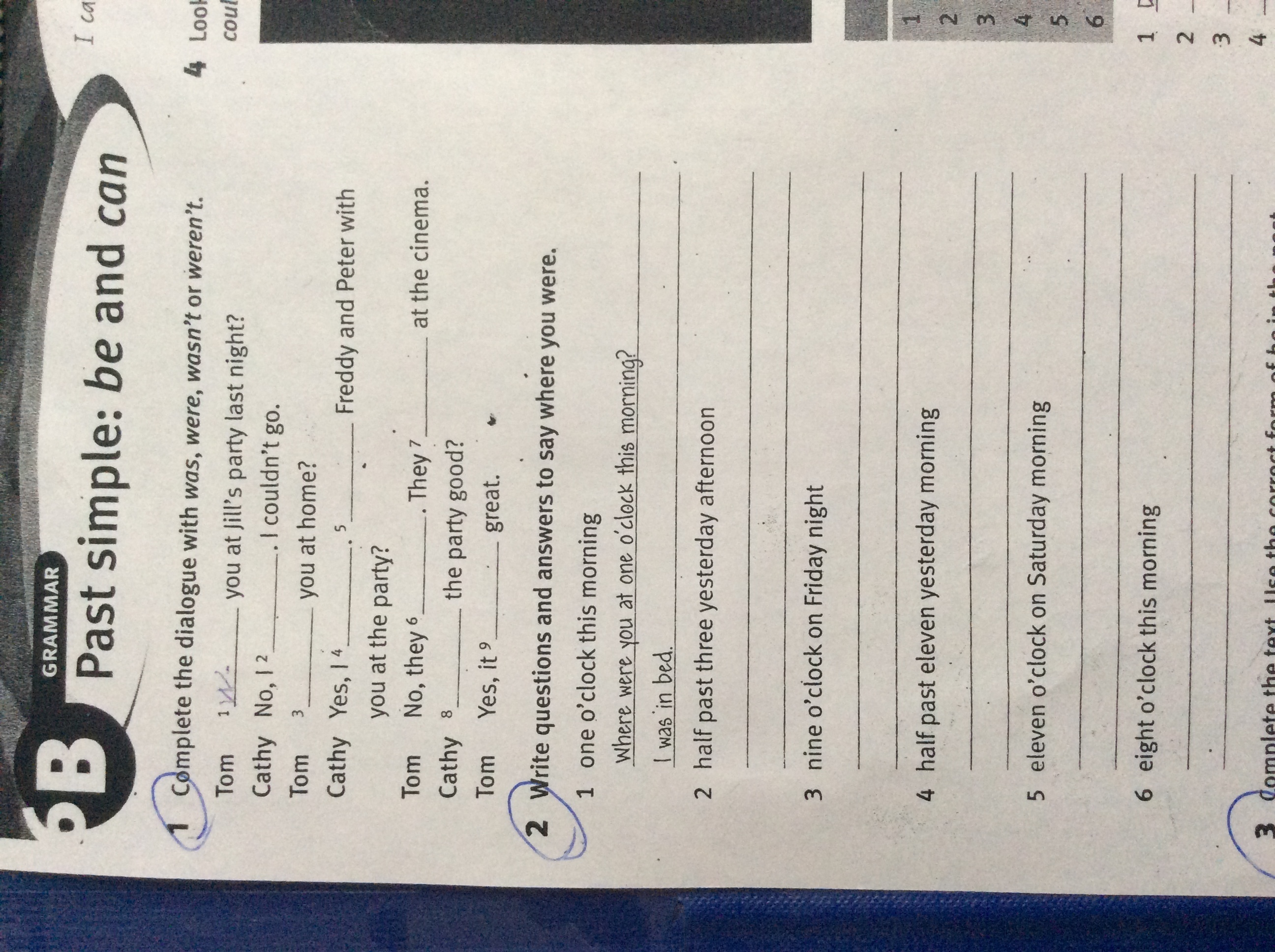 1 Complete the dialogue with was,were,wasan't or weren't