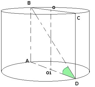 . Осевым сечением является прямоугольник ABCD, AD - диаметр основания. Площадь осевого сечения равна