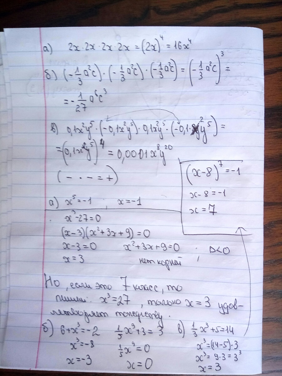 б) (– 1/3а²с) ∙ (– 1/3а²с) ∙ (– 1/3а²с);