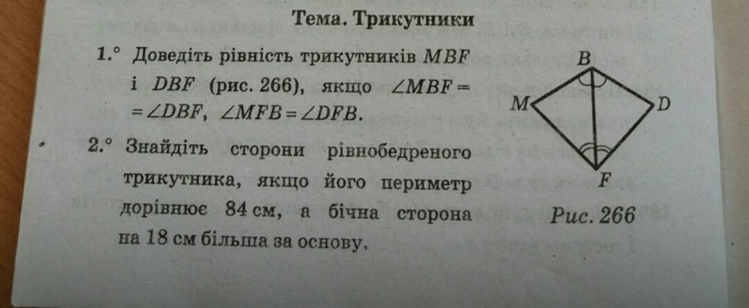 1. У двух треугольников с 2мя одинаковыми укламу третий угол одинаков, т.к. сумма всех углов треугольник равна 180 град. В нашей ситуации имеем угол BMF равен углу BDF.