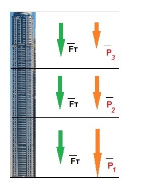 Д. 43. Лифт высотного здания в начале и конце пути движется с ускорением, а в средней части пути его скорость остается постоянной. Изобразите с помощью векторов силу тяжести и вес человека на каждом этапе подъема и спуска лифта.