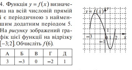 Раз по условию период равен 5, то f(6) = f(6-5) = f(1) = -3