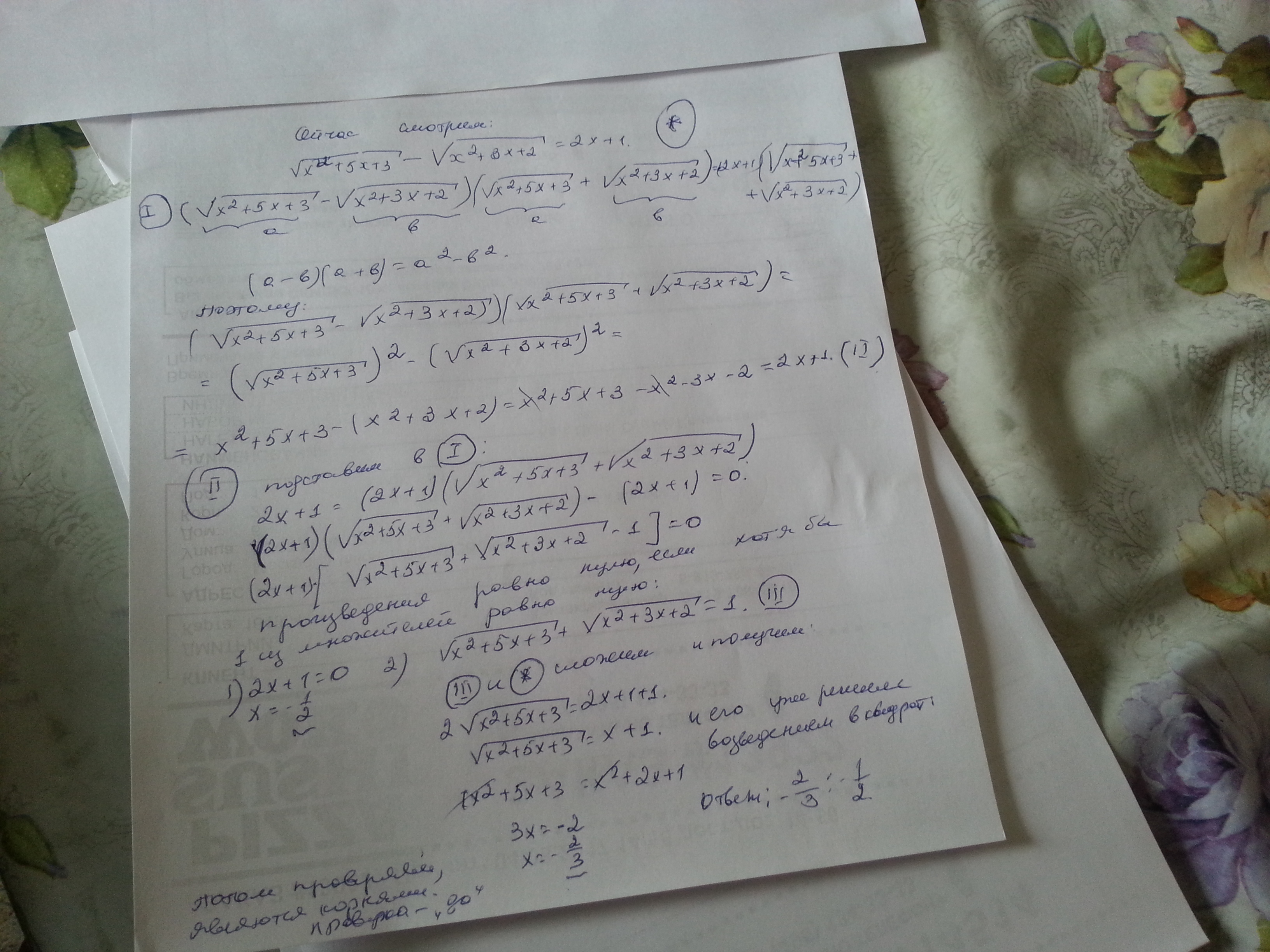 Откуда взялось 2√(x^2+5x+3)=2x+1+1 ? Пожалуйста объясните именно эту строчку и не могу понять