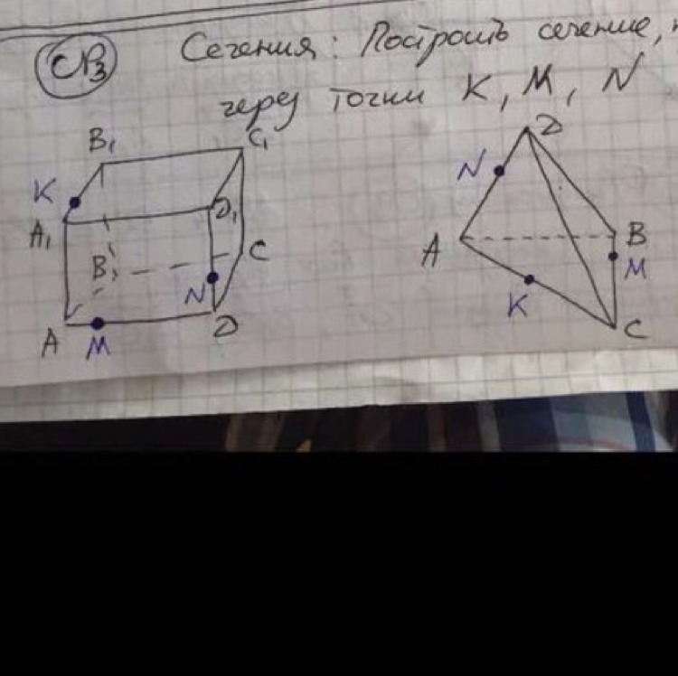 Сечения: построить сечение, проходящее через точки К, М,N