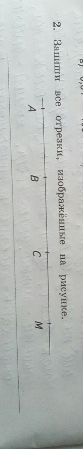Все отрезки:AB, AC, AM, BC, BM,CM.