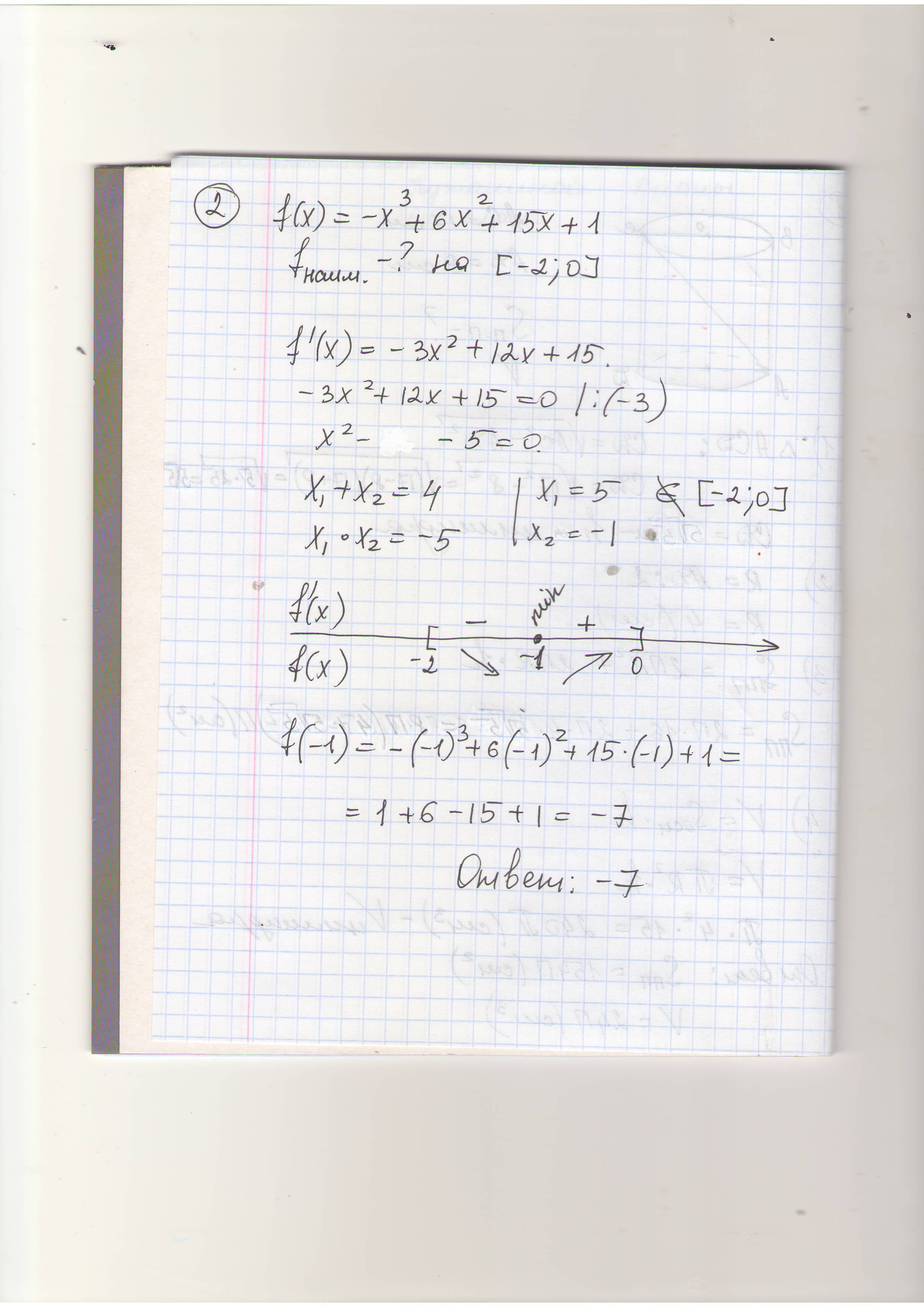 2) Вычислить наименьшее значение функции f(x) на заданном отрезке: