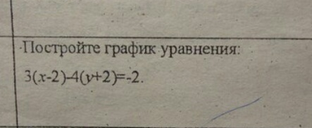 Задание. Постройте график уравнения: 3(x-2) - 4(y+2) = -2.
