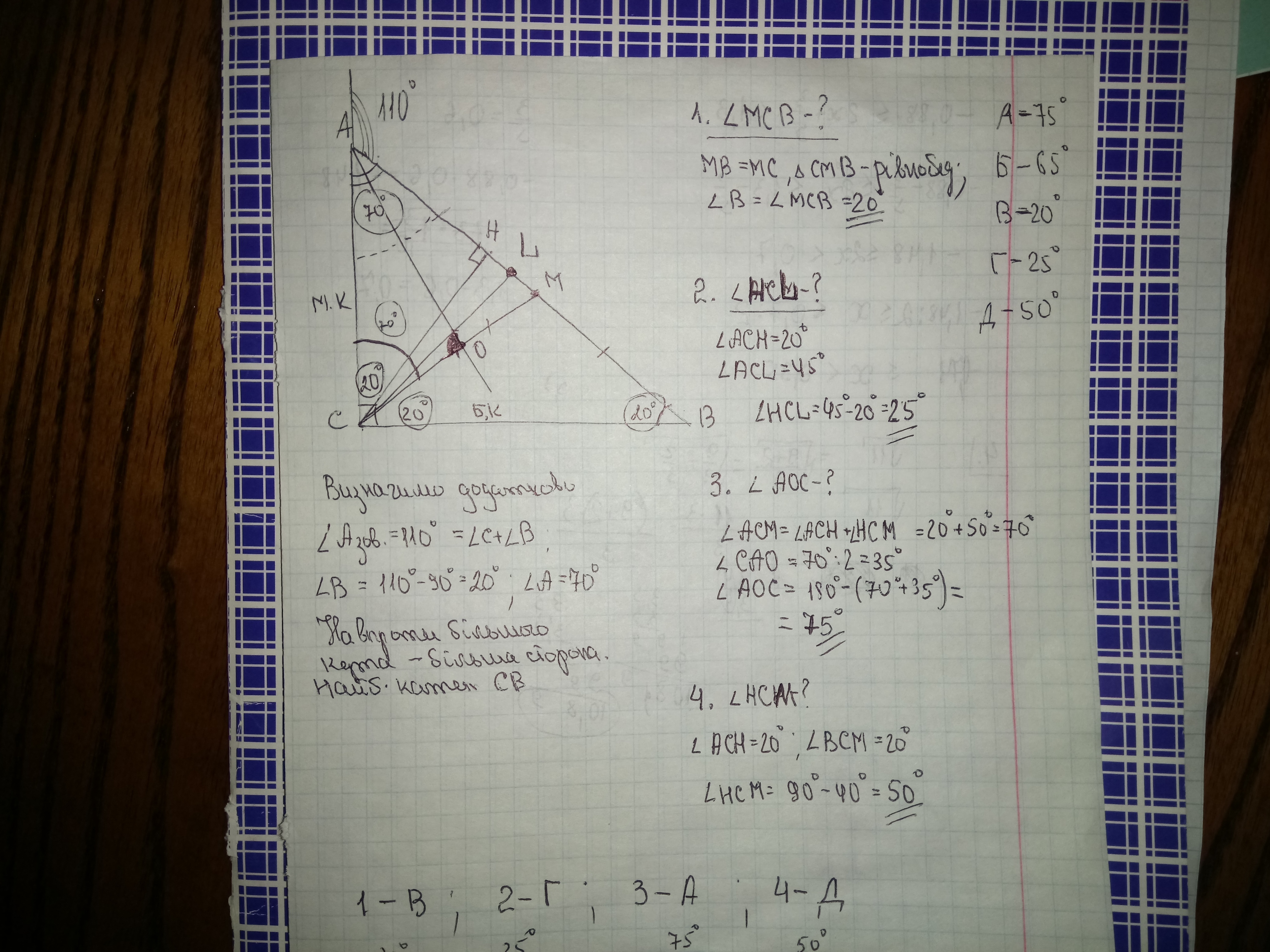 2 Обчислити кут між бісектрисою CL та висотою СН