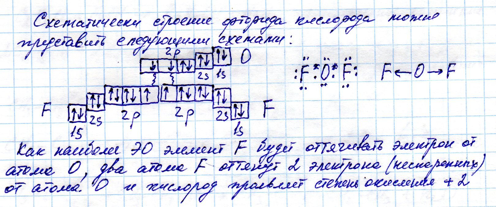 Чем обусловлена положительная степень окисления кислорода в его соединениях со фтором? Объясните пожалуйста, у кислорода же ведь нет третьего уровня, куда бы могли проскакивать его электроны...?