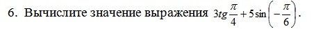 3tgπ/4+5sin(-π/6)=3*1+5*(-1/2)=3-2,5=0,5