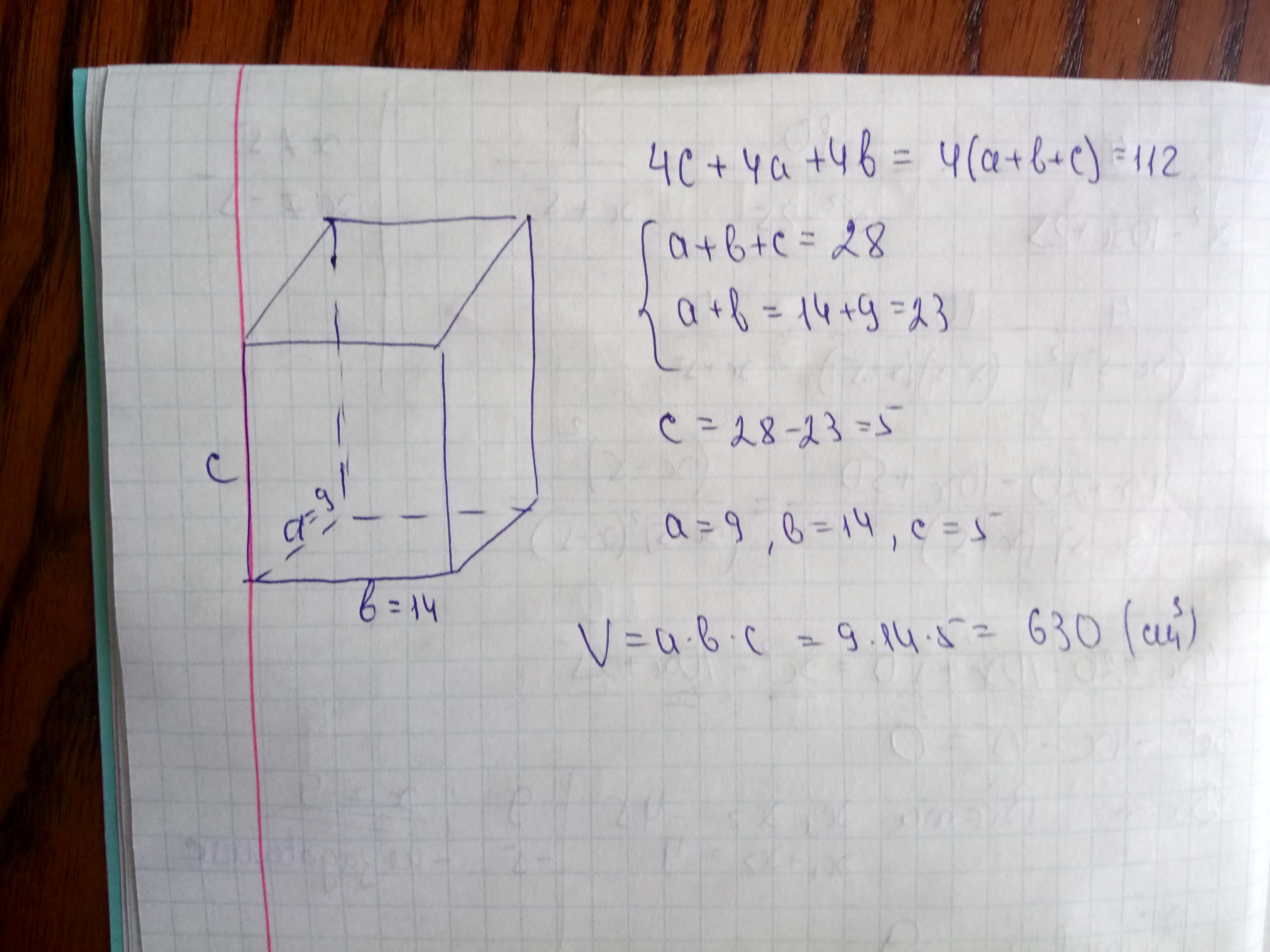 Сумма длин ребер прямоугольного параллелепипеда равна 112см, два его измерения 14 и 9 см. Найдите об объем парелелепипеда СРОЧНО ПЖ ПЖ ПЖ НАДО СРОЧНО ППЦ УК