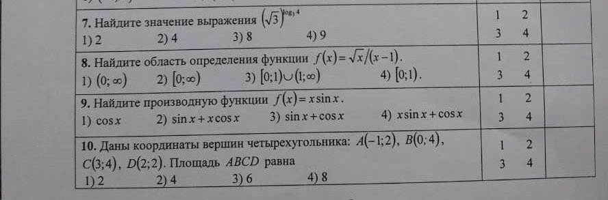 7)√3^(log3(4))=3^((1/2)log3(4))=3^(log3(√4))=2