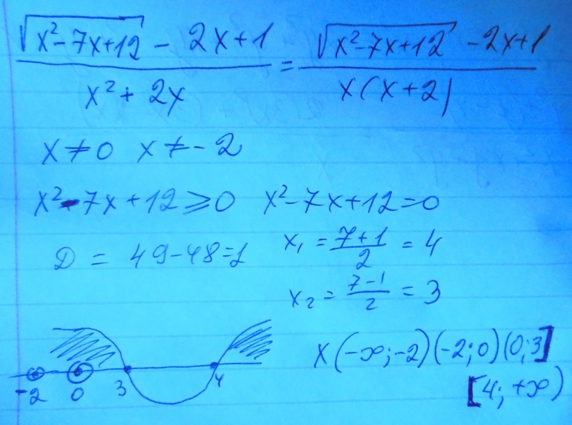 Корень из( х^2-7х+12)-2х+1/х^2+2х