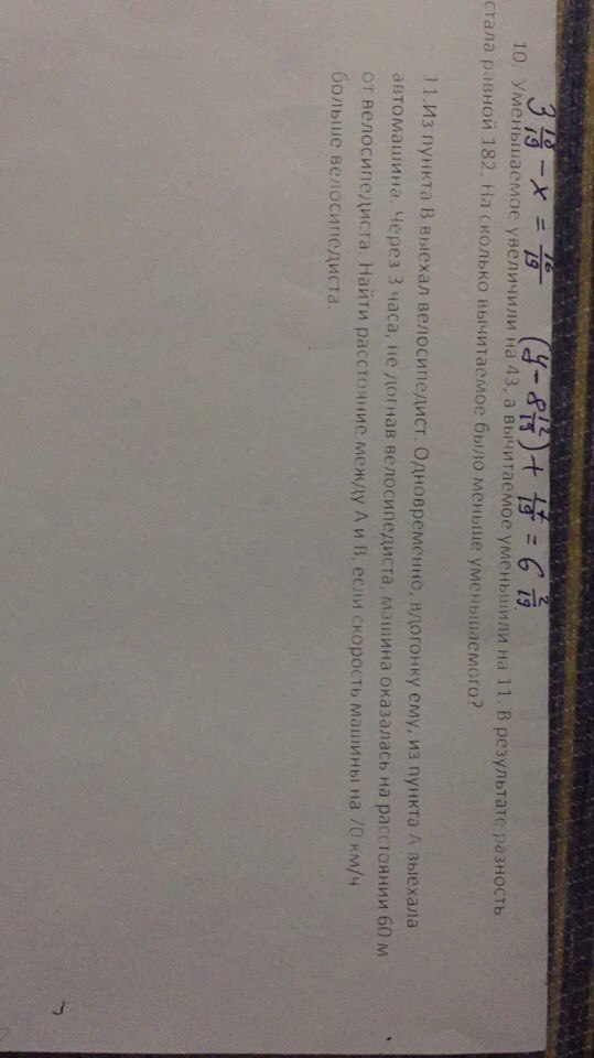 Если скорость машины на 70км/ч больше,ем у велосипедиста,то скорость сближения и будет 70км/ч.За 3 ч расстояние между ними будет 3*70+60=