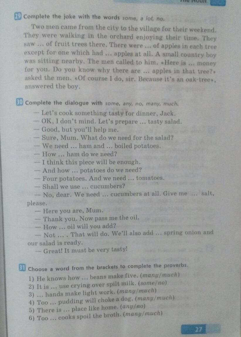 some tasty salad, some ham and some boiled potatoes, How much ham, And how many potatoes, need some tomatoes, any cucumbers?, no cucumbers at all, some salt, How much oil, Not much, Some spring onion.