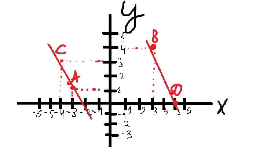 Постройте точки а (-3 1) В (3;4 ) Д(5;0) С (-4;3) ОПРИОДЕЛИТЕ КООРДИНАТЫ ТОЧКИ ПЕРЕСЕЧЕНИЯ . рисунок тоже можно