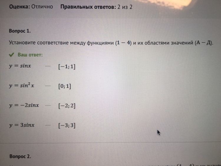 График функции y = -2 sin x получается из графика y = sin x умножением значений последнего на (-2). То есть значения отрезка [-1; 1] тоже умножаем на (-2), получим [-2; 2].