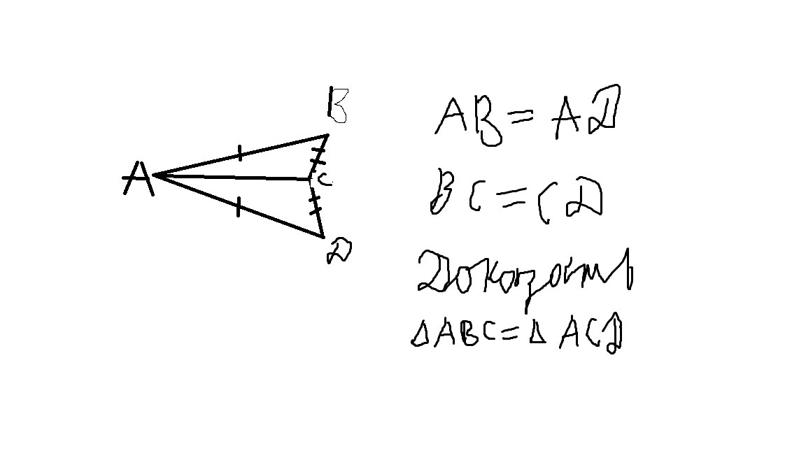 Следовательно, треугольники АВС и АСД равны по трём сторонам.